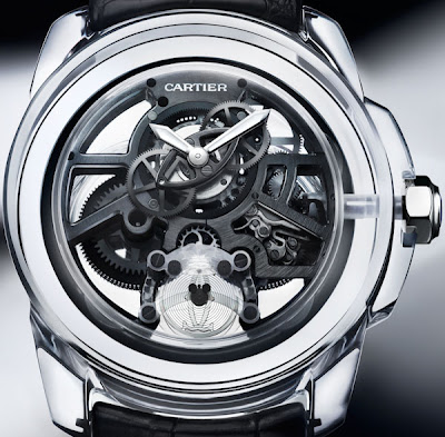 This is due to the fact that most people view Cartier as an excellent quality watch brand, but no where near Haute Horology or Horlogical Mechanical Machines. When one thinks of Cartier, one does not think of tourbillons, perpetual calenders, minute repeaters, sonneries, they think of exceptional quality precision timepieces crafted in gold or steel, blued hands, Roman Numerals and perhaps diamonds. They think of wedding or anniversary gifts - a display of love and time. Although this wonderful perception of Cartier will remain, among high end watch aficionado the perception of Cartier is in the process of change. A change into the realm of innovative precision timekeeping, cutting edge efficiency, groundbreaking mechanical horological technology and extreme complications.